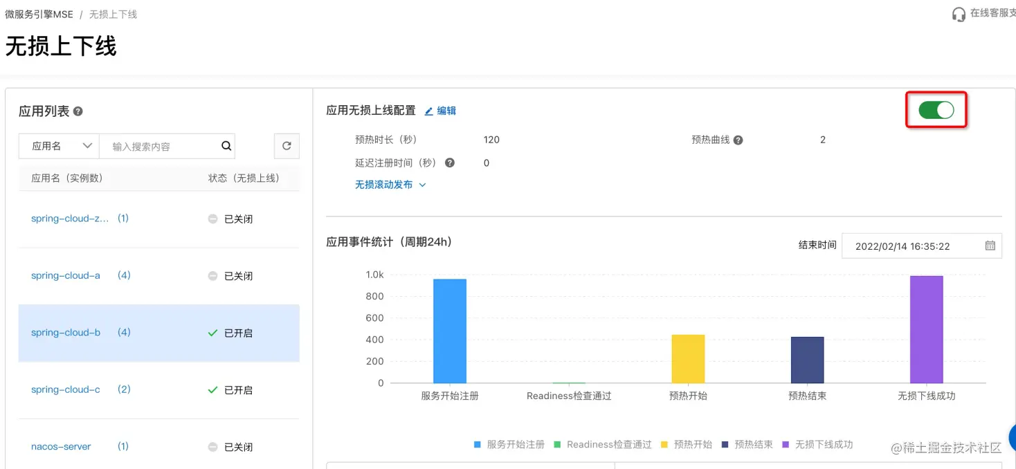 在预热应用的消费端 spring-cloud-b开启服务预热功能。