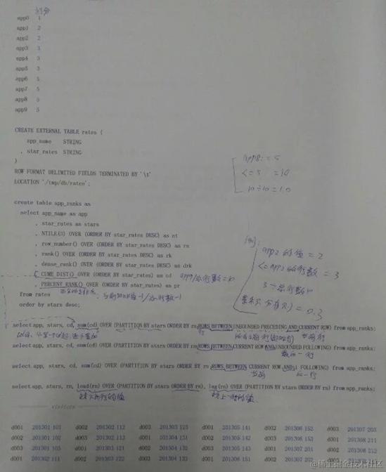 select app, stars, cd, <strong>sum(cd) </strong>OVER (PARTITION BY stars ORDER BY rn ROWS BETWEEN UNBOUNDED PRECEDING AND CURRENT ROW) from app_ranks;