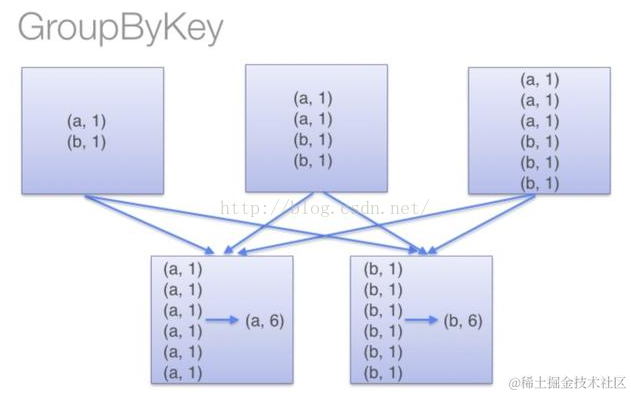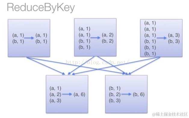 这个操作在Map-Reduce中也有,这里举个例子:rdd.groupByKey().mapValue(_.sum)比rdd.reduceByKey的效率低,原因如下两幅图所示(网上盗来的,侵删)