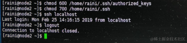 - 2. cat ~/.ssh/id_rsa.pub >> ~/.ssh/authorized_keys
