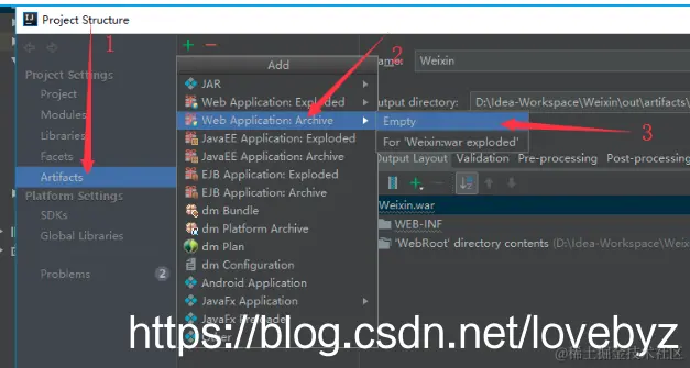 二、注意一定选空的Artifacts,我用现有的导致swagger一直不能显示api信息