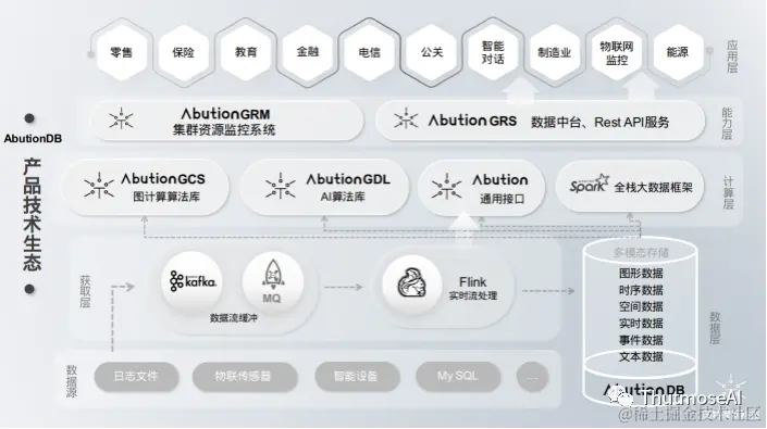 天然支持机器学习特征存储的数据库少之又少,大多数的业务都可能涉及数据库与机器学习应用的相互结合,在线且在同一套存储系统中存储特征好处无需多讲。为了更快速“懂”你的客户,提供更好的服务,用户的各个时间段的行为不容忽视,时序的特征存储成为关键,即可以快速取到历史数据,又可以在线生成时间段的行为特征,而不必像往常一样将历史数据反复的重新计算来获取特征。为了更真实的将现实社会特征“虚拟”到数字化网络,知识图谱无疑是未来时代的宠儿,它可以360度的将你的用户特征刻画并存储在虚拟网络中,这些用户特征将会随着用户的行为而实时同步到虚拟网络中,并结合历史特征实时更新这些指标值,这就是“数字孪生”技术,将现实场景复制到数字网络中,实现虚实对应。AbutionDB就是这样的一个存储系统,为了适应数据产生速度、数据应用速度、数据计算速度越来越快的时代,AbutionDB同时支持知识图谱数据(动态)、K-V关系数据、事件数据、空间数据、机器学习特征、文本数据的存储。以领域知识驱动数据建设,面向实时、多源、异构、多维度、多尺度、动态、可追溯和跨模态复杂社会信息网络的风险感知、智能分析和群体决策的超大规模时序关联图及大数据智能计算一体化平台。实现一套多用,一个平台解决所有数据应用问题。