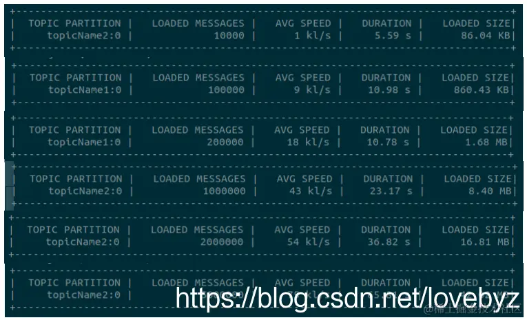 结果中,LOADED MESSAGES表示每批次的实时写入事件记录数(包含两个实体和一条关系),DURATION表示这批次数据入库的时间。