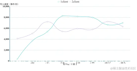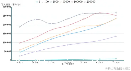 X轴:批次提交量,Y轴:每秒平均写入事件数