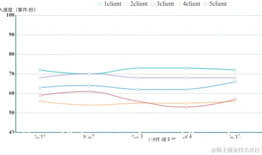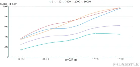 | 事件数 | 1client | 2client | 3client | 4client | 5client |