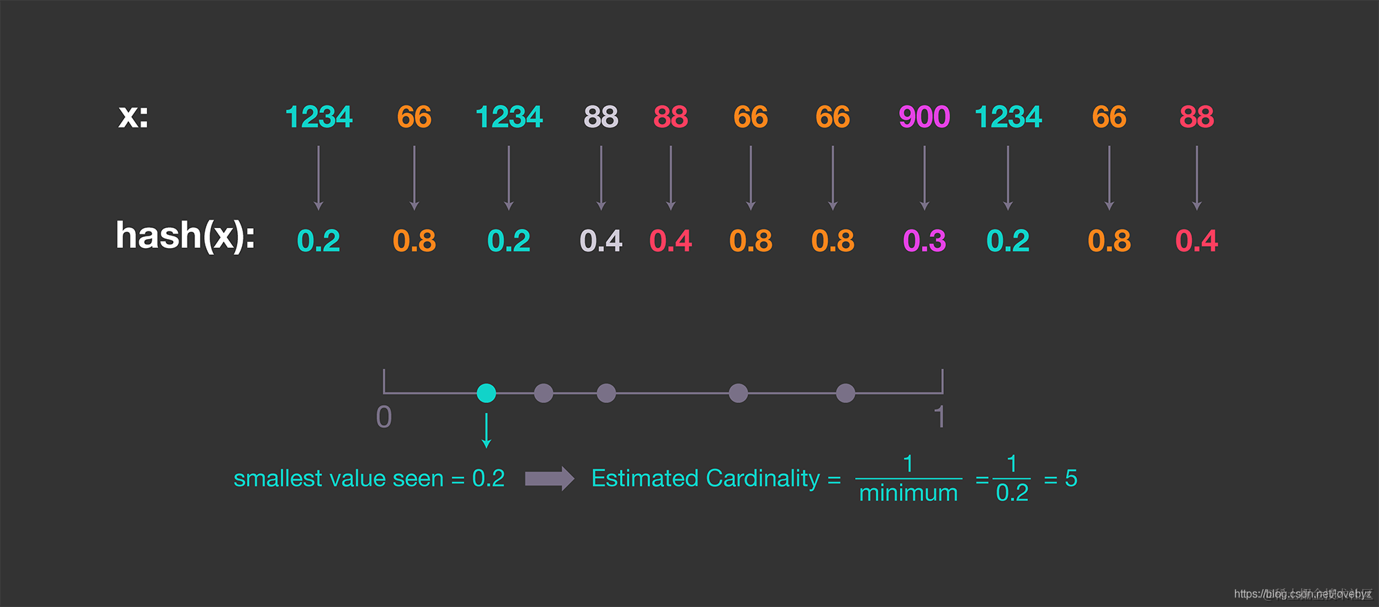 非重复计数度量对于许多场景非常重要,假设在内存限制内适应您的数据量以保证线性缩放,那么使用蛮力(例如HashSet)技术来计算特定的有限大小值列表中的不同值(DV)的数量是相当简单的,在计算少量数据的情况下,就足够了。但是,在许多其他情况下,简单的线性方法无法像我们期望的那样按比例缩放,因此需要一种更强大的算法。