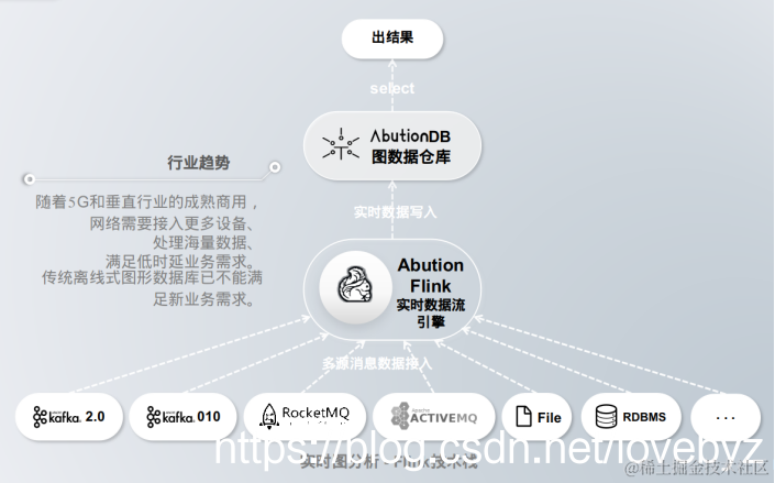 而对于Flink的资深工程师,您就可以随意的发挥了,没有强绑定的使用规则,一切以优化的业务实现为主,您还可以使用Flink的计算能力提前聚合一些图数据,减轻Abution的IO,提高写入和查询效率,特别是在物联网传感器监控场景(包括电网能源场景),由于数据更新太快(一秒内更新几次),那么您就可以采用这种内存的计算方式,实时监控后再落地给Abution做后续的操作,AbutionGrapha的图数据可以脱离数据库实现聚合,或者是在Flink中实现聚合,可以有效减少数据写入量,相关功能的功能都已备好,可以方便的使用。