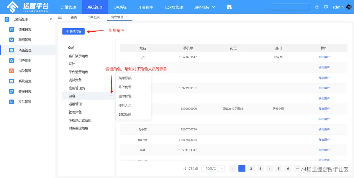 - 角色管理操作