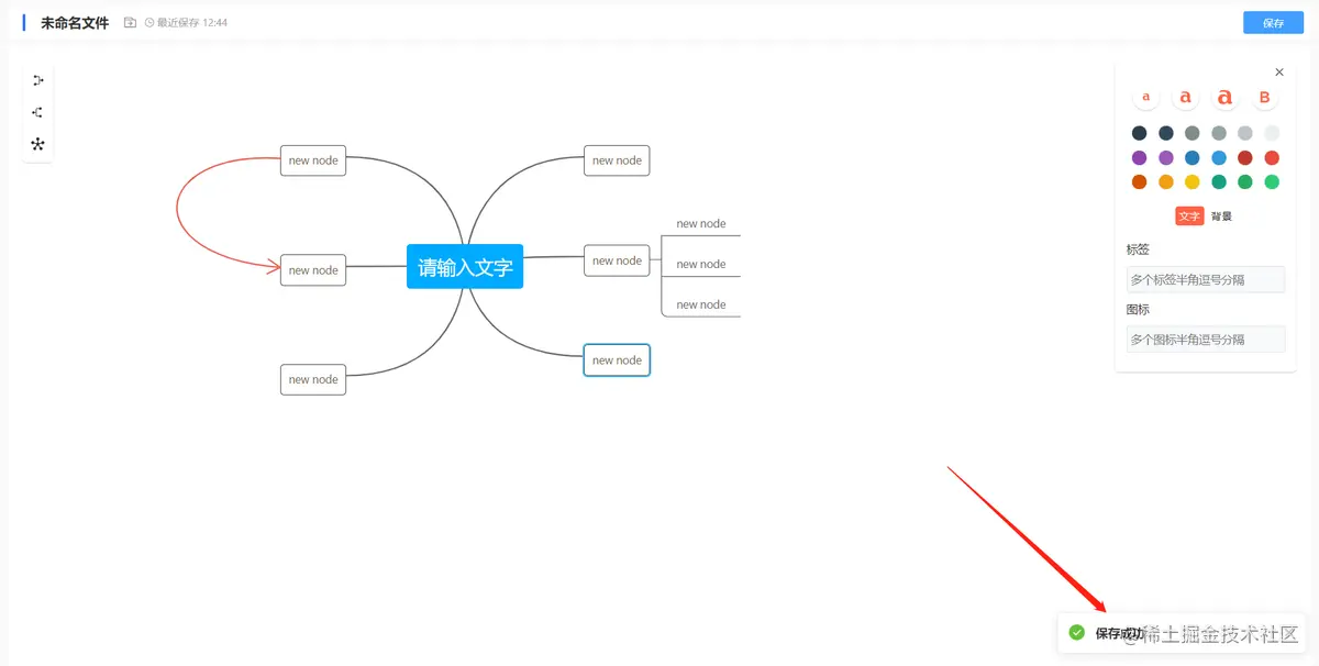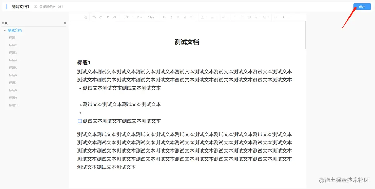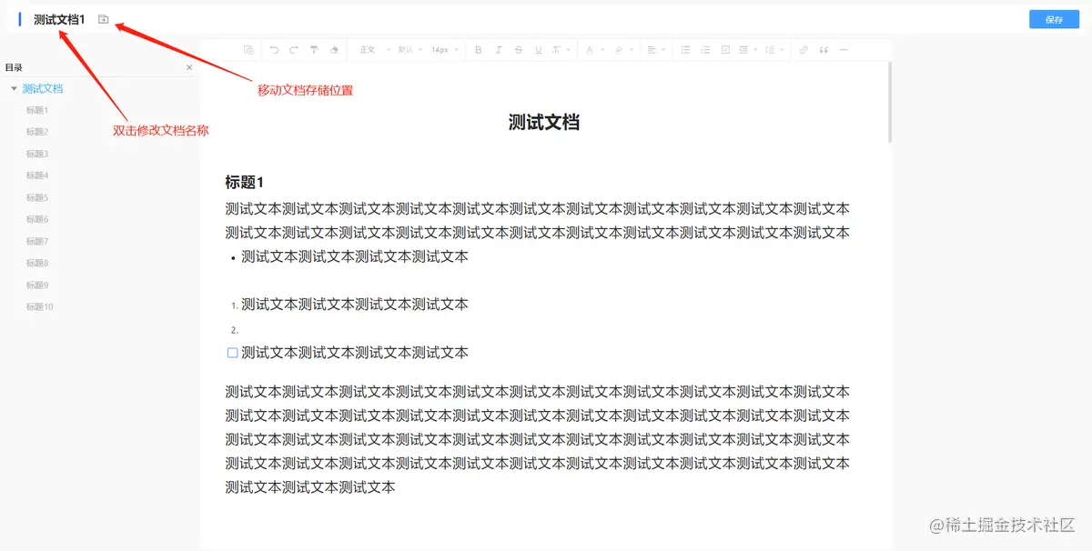 - 文档保存,如下图所示,支持手动保存与快捷键保存“Ctrl+S”,保存成功后系统进行提示