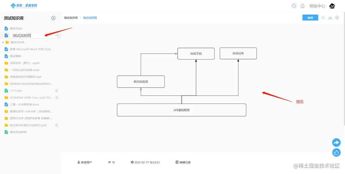 - 文件的预览,点击左侧资源文件,右侧对文件进行预览展现,支持下载,分享等操作