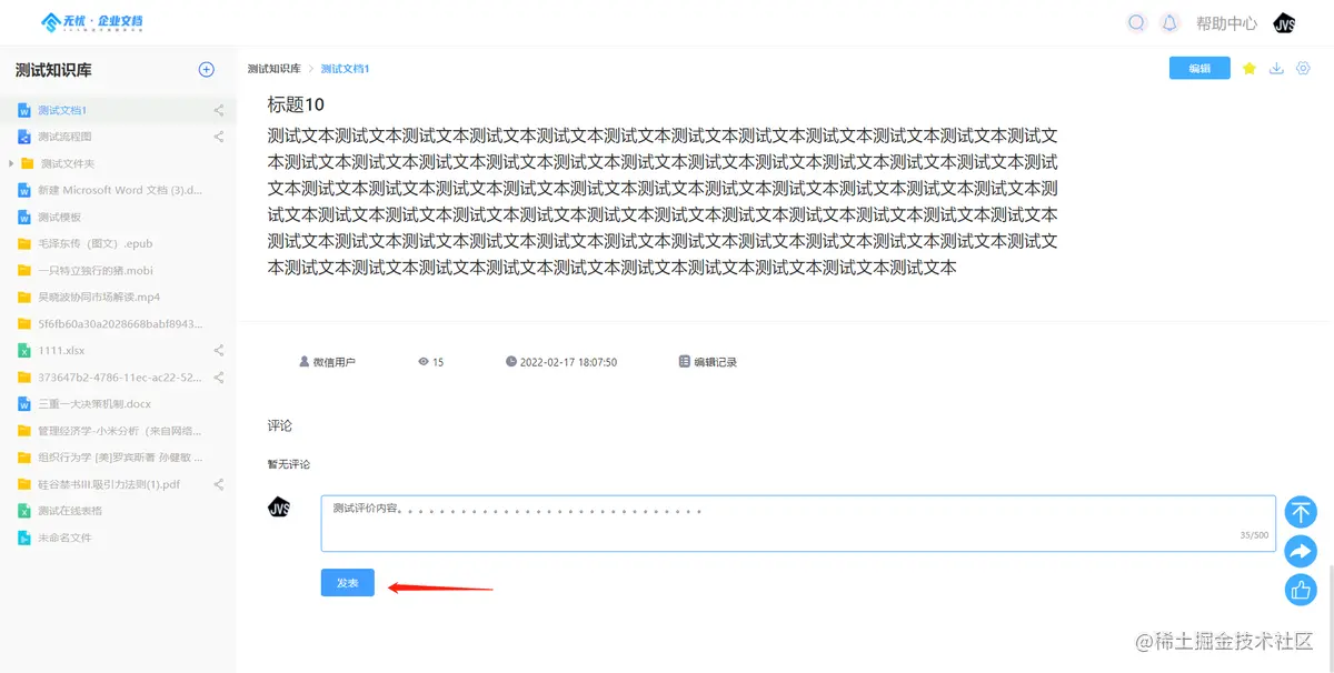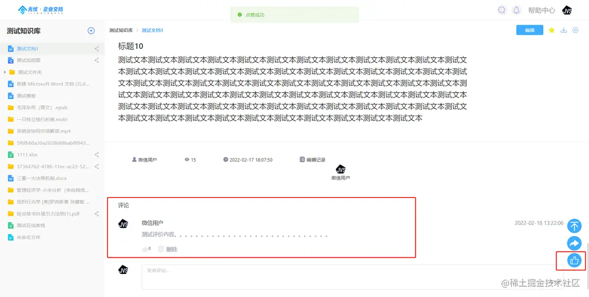 - 支持对文档内容进行评价与点赞