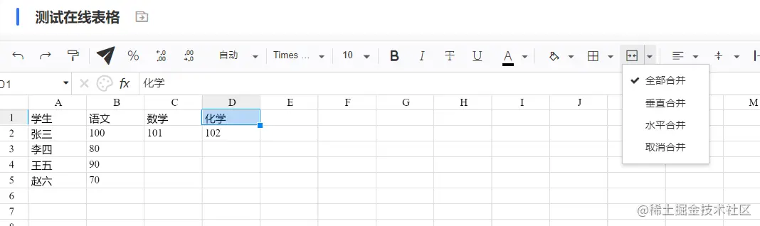- 单元格合并