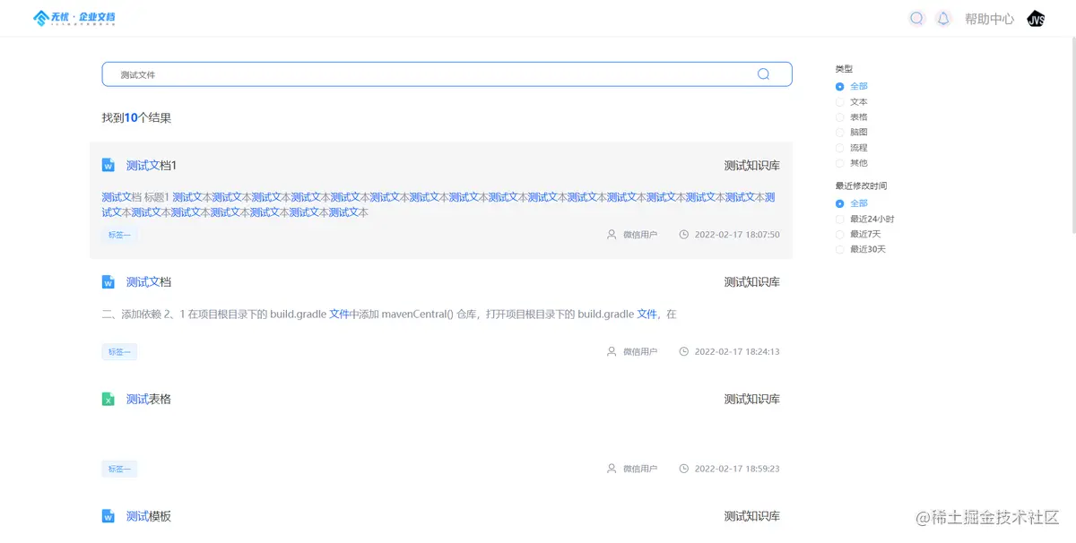 - 企业级搜索引擎,支持文本名称、内容的搜索