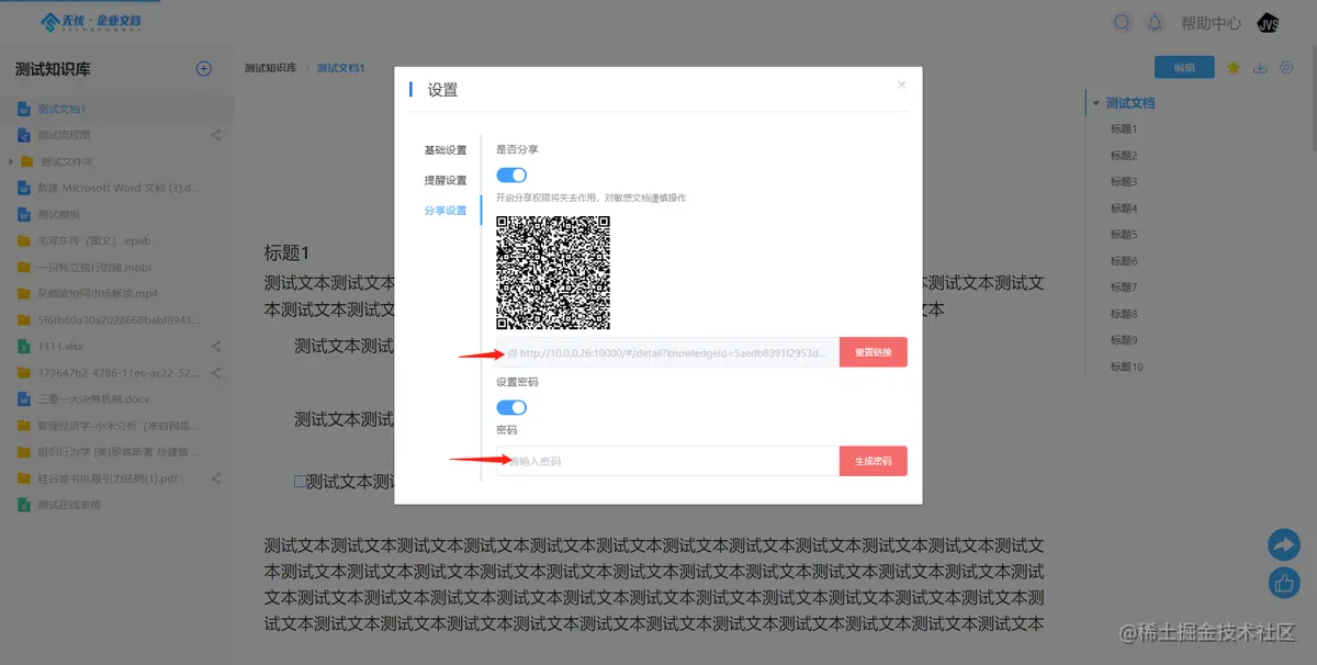 - 文档的分享,支持无密码、有密码的分享
