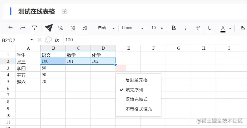 - 单元格内容自动填充