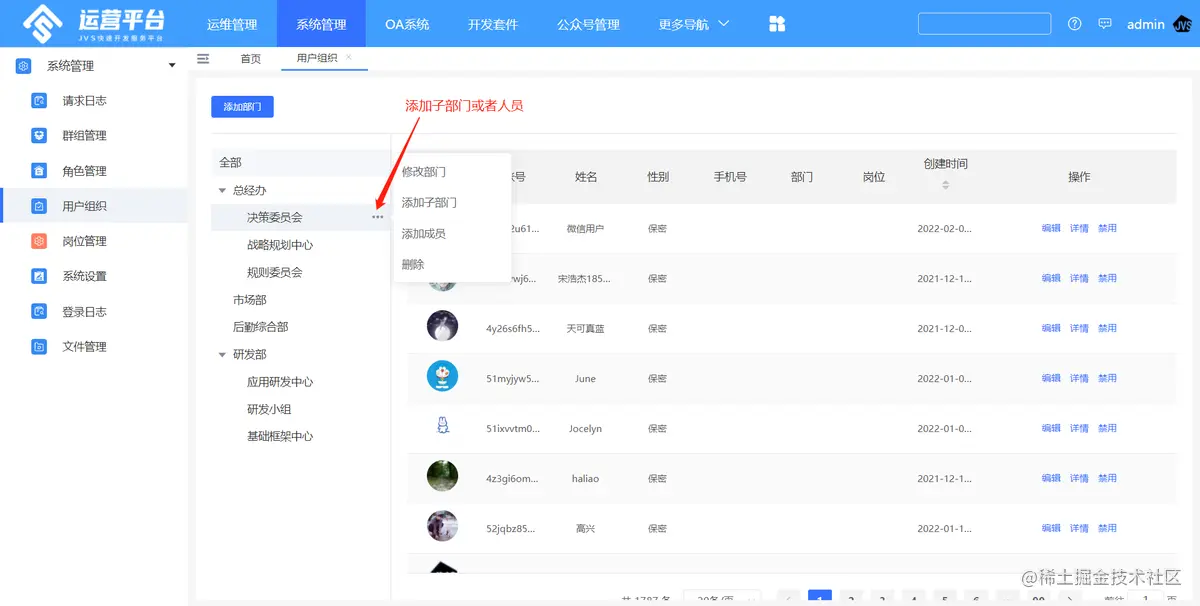 - 添加子部门或者人员