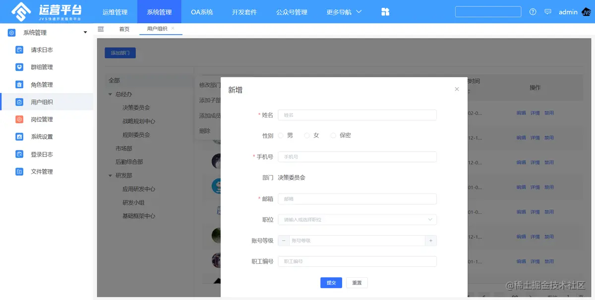 - 添加组织部门
