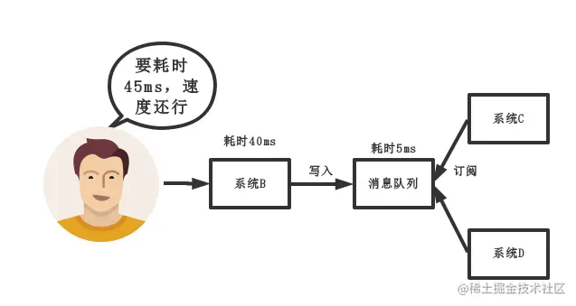 一些非必要的业务逻辑以同步的方式运行,太耗费时间。