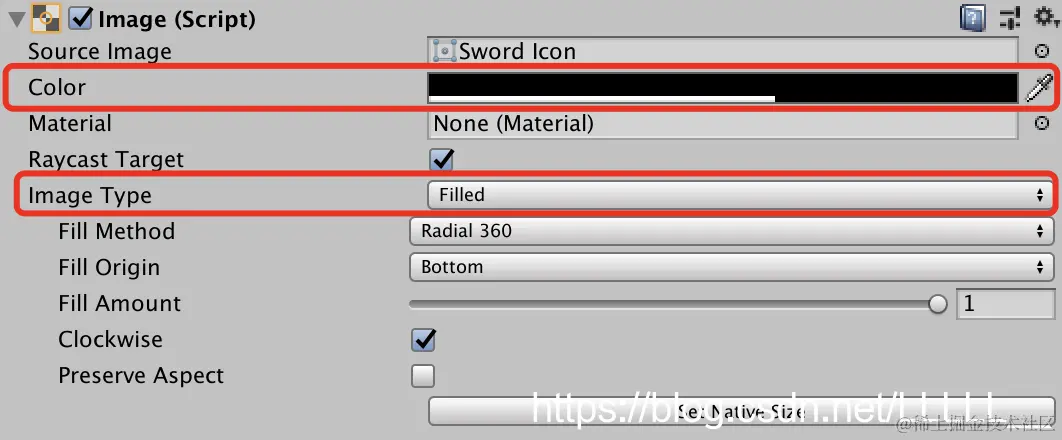 一个技能图片的遮罩Image(透明度降低),将遮罩的Image属性设置为Filled,遮住正常的技能Image