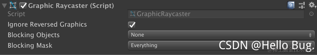 这个组件用于UI元素的交互,一个Canvas下的UI元素想要响应射线检测必须在Canvas上挂在此组件
