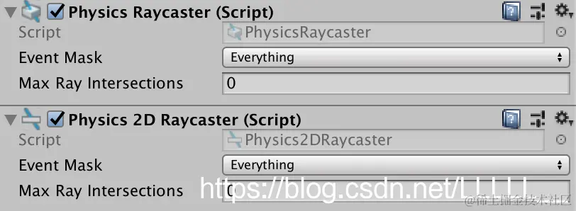 这个组件用于UI元素的交互,一个Canvas下的UI元素想要响应射线检测必须在Canvas上挂在此组件