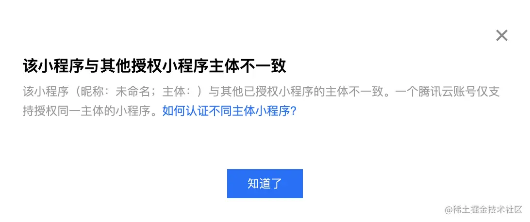 A:在绑定授权小程序的时候,出现了“该小程序与其他授权小程序主体不一致”的提示。