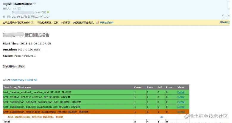 整合自动化测试发送测试报告: