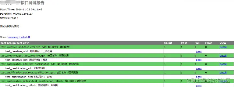 5.测试报告利用HTMLTestRunner生成。