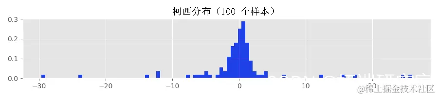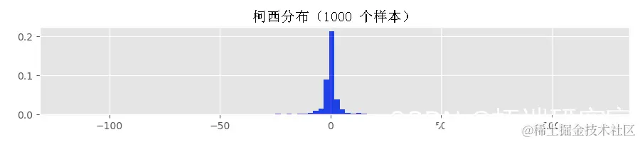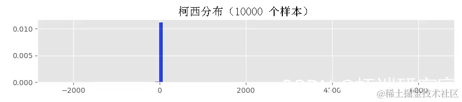 如果使用路径生成函数的时间足够长,甚至可能会生成溢出异常。因此,我用来生成上面显示的直方图的 Python 函数失败了。为了了解原因,让我们使用来自柯西分布的样本生成一些直方图: