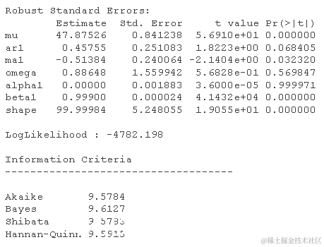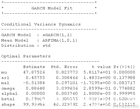 为了获得 GARCH 模型的具体结果,我们使用以下代码: