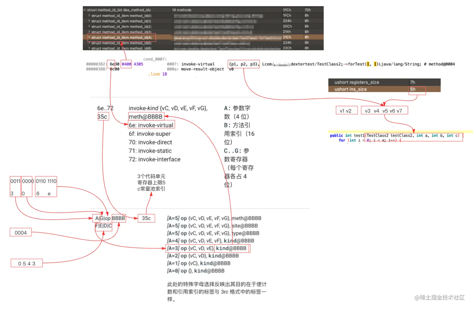 在扩展寄存器的时候会遇到指令异常的问题,主要原因是寄存器数量扩展过多超过16个导致的,原字节码的寄存器使用可以保证寄存器的正确使用,在插入的时候也要保证寄存器的正确。
