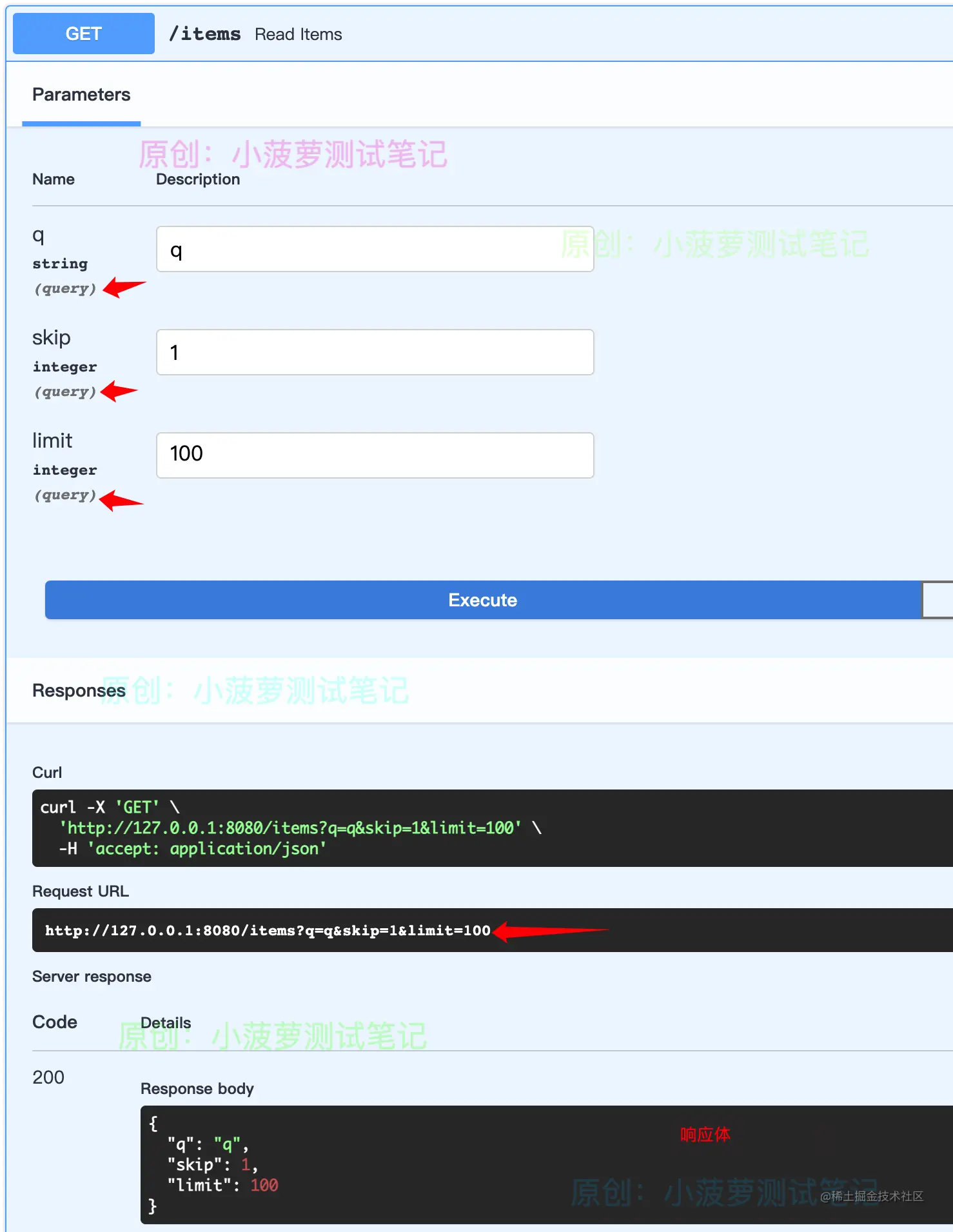 - /items 的请求传参方式是查询参数