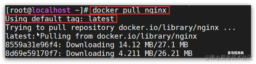 2)根据查看到的镜像名称,拉取自己需要的镜像,通过命令:docker pull nginx