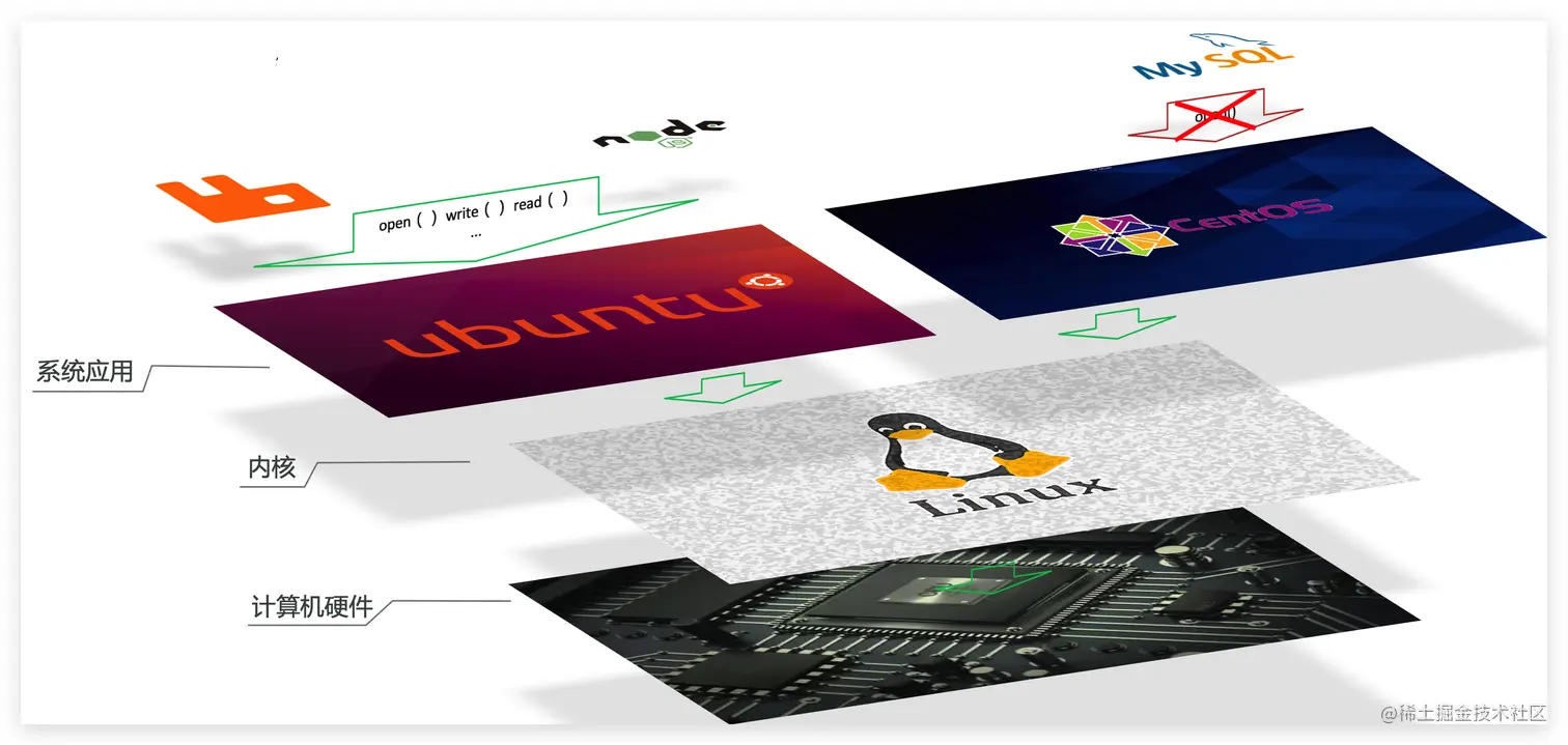 要解决不同操作系统环境差异问题,必须先了解操作系统结构。以一个Ubuntu操作系统为例,结构如下: