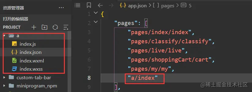 - 在 app.json 中的 tabBar 项指定 custom 字段,同时其余 tabBar 相关配置也补充完整。
