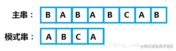 如下例子:主串T为“BABABCAB”,模式串S为“ABCA”。