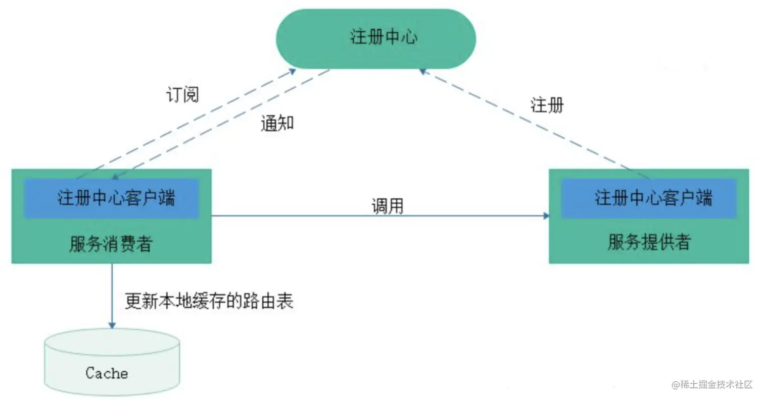 - 服务消费者在第一次调用服务时,会通过注册中心找到相应的服务的IP地址列表,并缓存到本地,以供后续使用。当消费者调用服务时,不会再去请求注册中心,而是直接通过负载均衡算法从IP列表中取一个服务提供者的服务器调用服务。