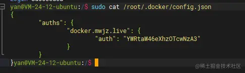 Harbor 仓库登录成功后, Docker 会在 /root/.docker/config.json 文件中添加当前仓库的登录凭证。