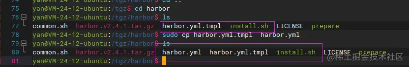 Harbor 目录中两个关键文件是: harbor.yml.tml 和 install.sh。