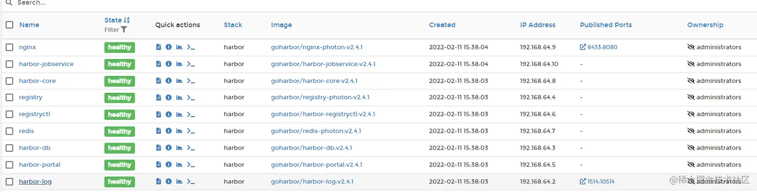 让人头疼的是容器命名规则,并没有添加 harbor 前缀,对于强迫症来说真心难受。。。
