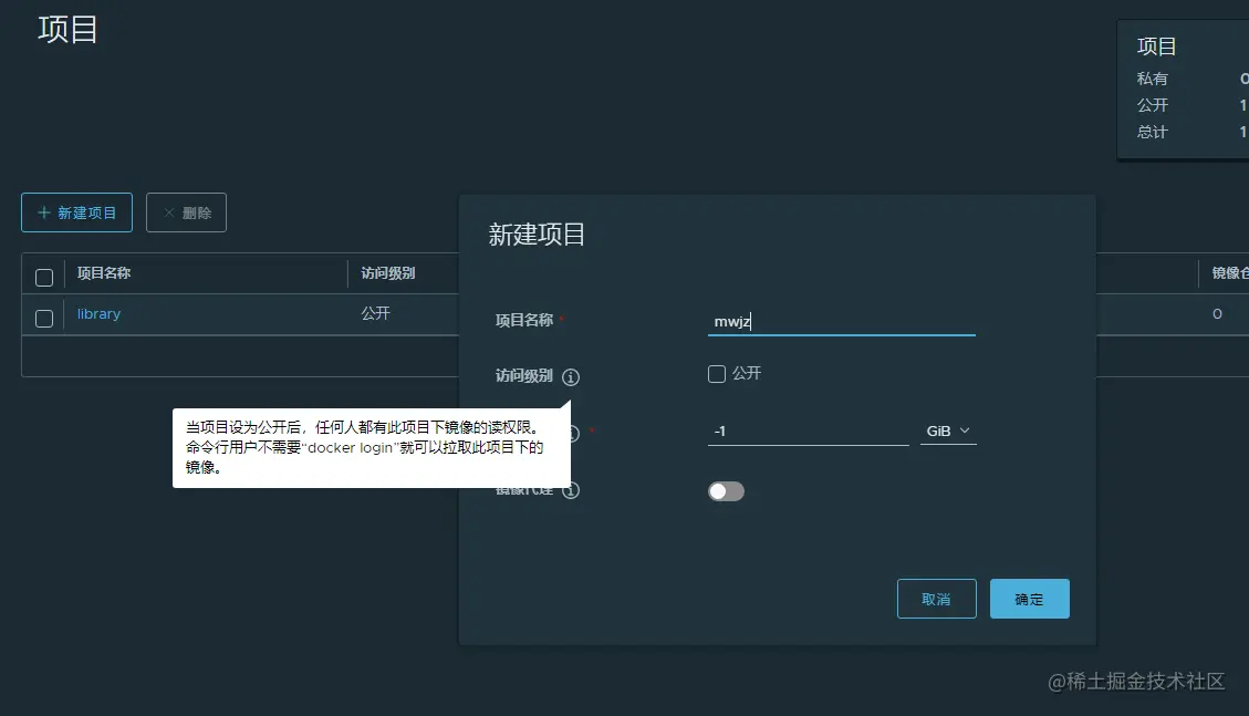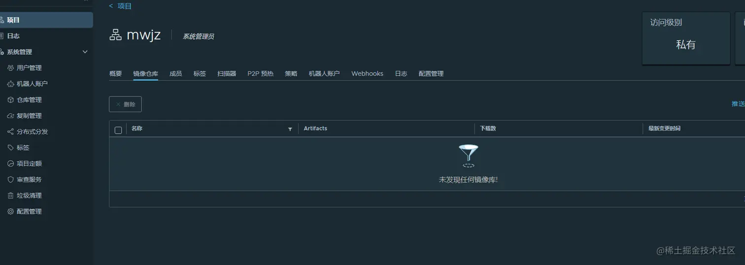 Harbor 仓库 mwjz 是一个私有项目,需要登录才允许 拉取、推送。