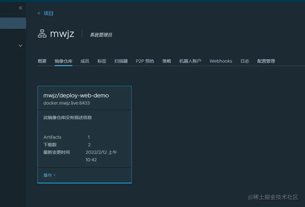 也就是 mwjz 项目 deploy-web-demo 镜像拉取、推送的地址为: docker.mwjz.live/mwjz/deploy-web-demo