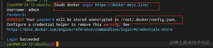 使用 Docker 登录 Harbor 仓库时,注意 必须使用 sudo 或者 root 用户登录,否则其它用户无法使用此登录凭证