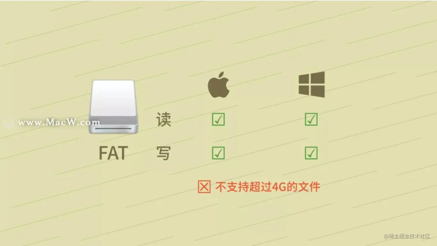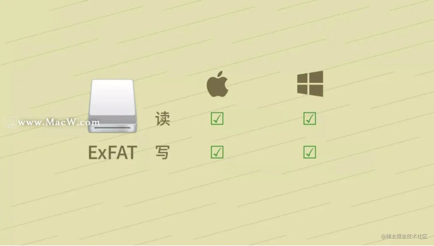 ExFAT能够在Mac和Windows两个系统进行读写,是目前最推荐的磁盘格式。