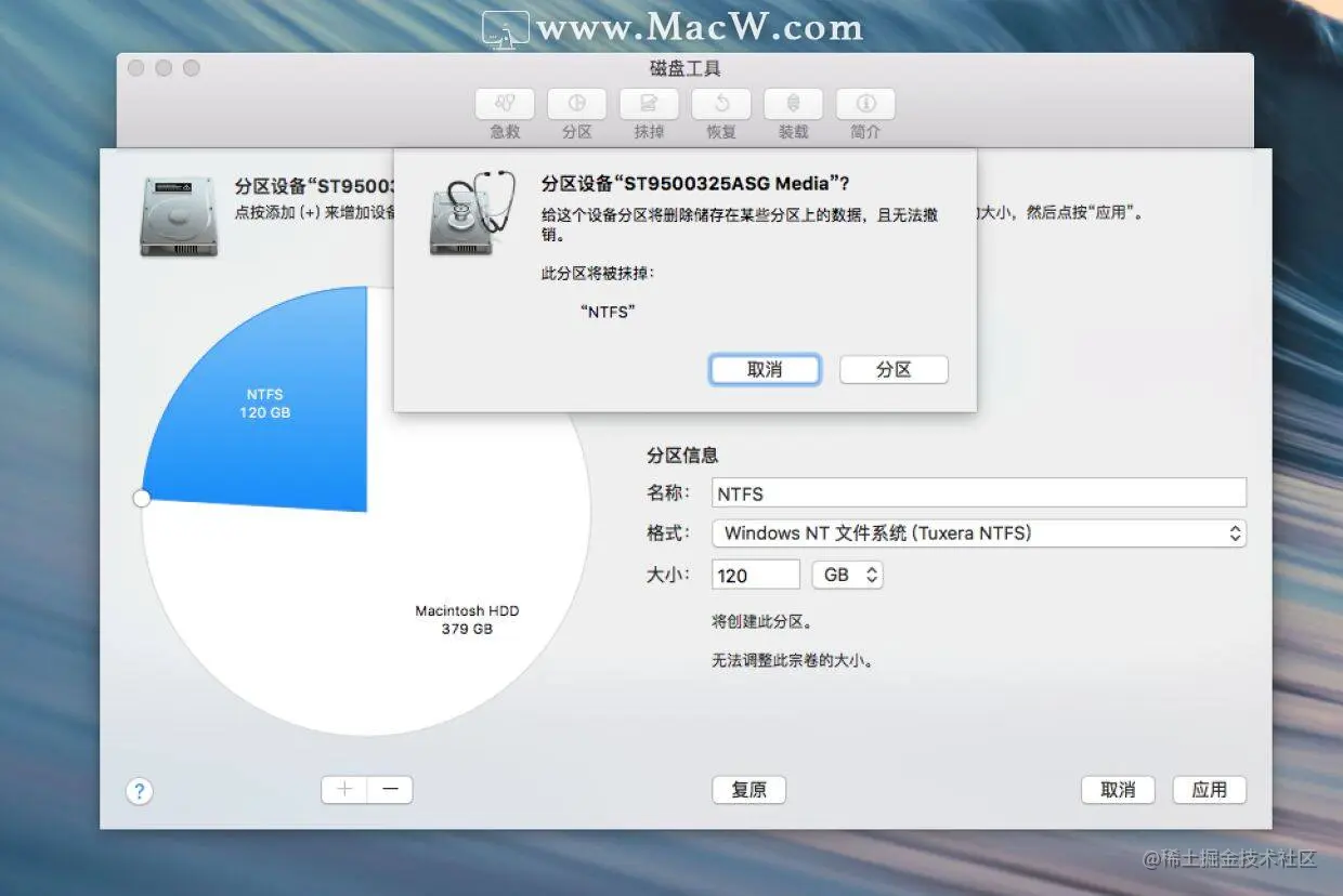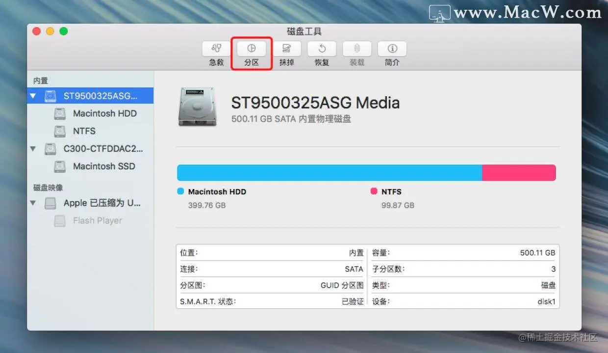 MacW提醒:尝试进行任何磁盘分区调整大小之前,请务必备份一下磁盘内的资料会更稳妥,以免因为你操作的不小心,造成不必要的损失。