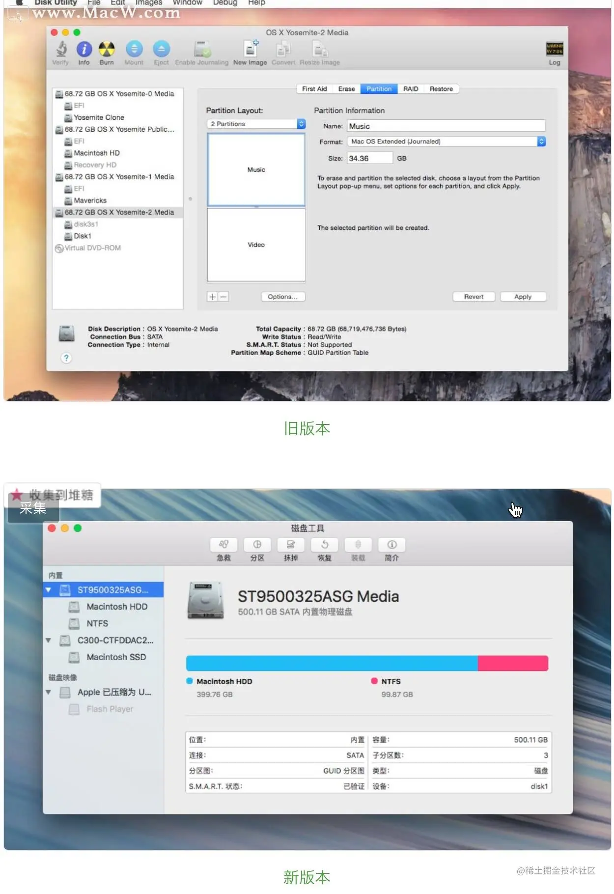 “OS X”经过几次大版本升级以后,也改名为“macOS”,而且系统自带的“磁盘工具”无论是功能和界面也有很大的改变。