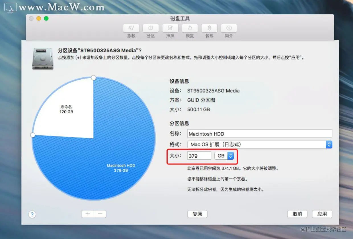 可以在“macOS”下利用磁盘工具并且不抹掉主分区的情况下,随意更改磁盘分区大小的方法。