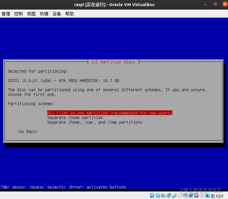 如果是小白的话,选择第一项就好(翻译)——意思是所有文件放在一个分区,也就是
