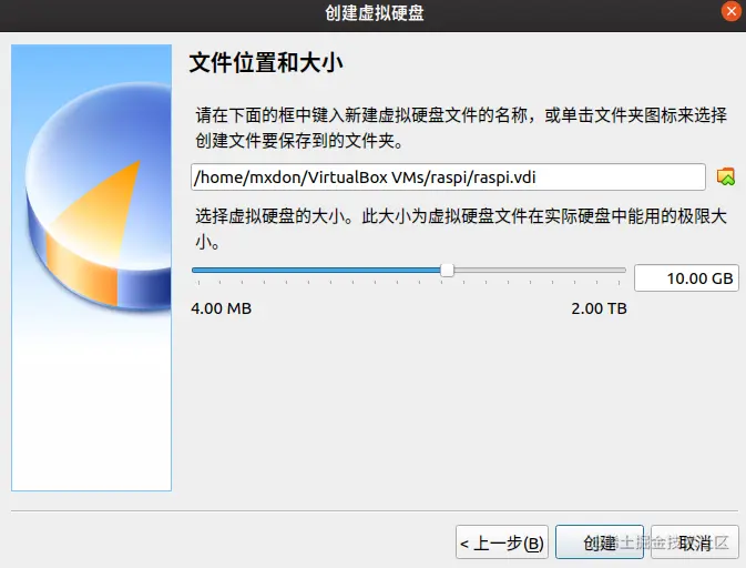 4GB大小,再考虑我的使用情况,姑且分配10GB给他