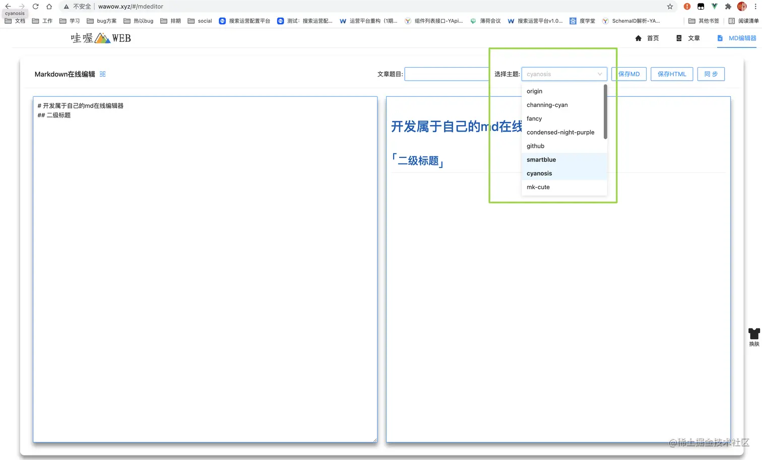 通过上面的内容不难发现,原来开发一个MD在线编辑器并不难,一方面得益于前端生态的强大和全面,一方面得益于对优秀项目的学习和借鉴,要不然光是写一个原生的MD解析器就够我们喝一壶的,再去定制各种主题更需要花费各种成本,这些就足够劝退一大部分开发者。